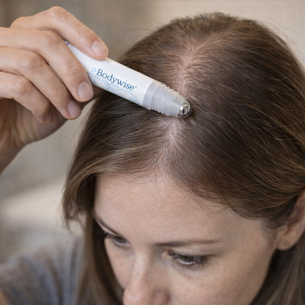 The roll-on massages serum into the hairline, helping stimulate the scalp and support stronger hair growth over time.
