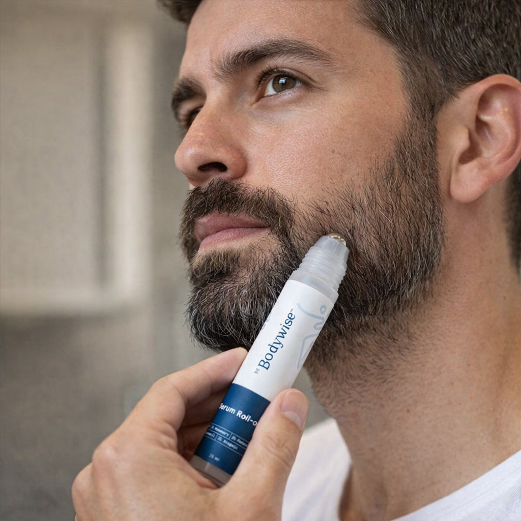 The roll-on delivers serum directly to the beard area, nourishing hair roots and supporting thicker, healthier beard growth.